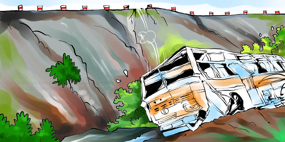 पूर्वबाट पश्चिमतर्फ जाँदै गरेको ना।५ख १८९८ नम्बरको यात्रुबाहक बस अचानक अनियन्त्रित भएर सडकभन्दा २० फिट तल खसेर दुर्घटना भएको प्रहरीले जनाएको छ ।