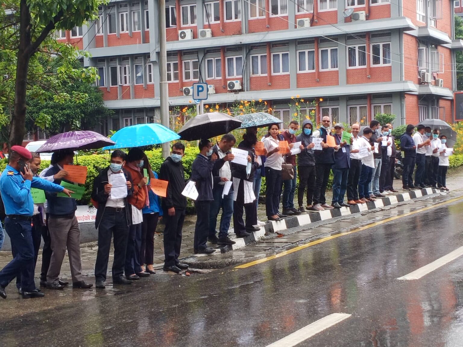 सामान्य प्रशासन मन्त्रालय घेराउ गर्दै कर्मचारी