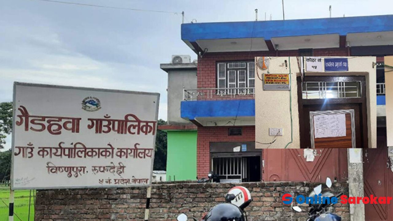 रूपन्देही। गैडहवा गाउँपालिकाको कार्यालयमा गरिएको तालाबन्दीबारे आज कार्यपालिका बैठक बस्ने भएको छ ।
