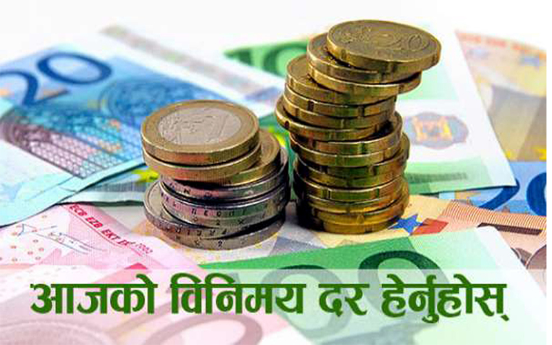 काठमाडौं । नेपाल राष्ट्र बैंकका अनुसार आज सोमबार अमेरिकी डलर एकको खरिदमूल्य १२६ रुपैयाँ ४८ पैसा र बिक्रीमूल्य १२७ रुपैयाँ ०८ पैसा रहेको छ। त्यस्र्तै, युरोपियन युरो एकको खरिदमा १२८ रुपैयाँ ७९ पैसा र बिक्रीदर १२९ रुपैयाँ ४१ पैसा छ भने अष्ट्रेलियन डलर एकको खरिदमा ८७ रुपैयाँ ४० पैसा र बिक्रीमा ८७ रुपैयाँ ८१ पैसा छ । त्यस्तै, सिंगापुर डलर एकको खरिद मुल्य ९१ रुपैयाँ ५६ पैसा र बिक्रीमूल्य ९१ रुपैयाँ ९९ पैसा छ ।