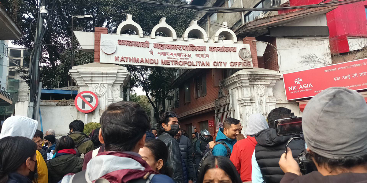 सयौंको संख्यामा पुगेका सम्पदाकर्मीहरुले महानगर प्रमुख बालेन साह र उपप्रमुख सुनिता डंगोललाई ज्ञापनपत्र बुझाउन खोजेका छन्। तर, उनीहरुलाई महानगरको कार्यालय प्रवेश गर्न दिइएको छैन।