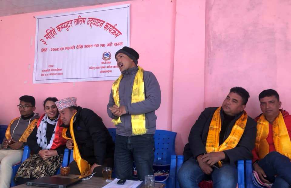 ओखलढुंगा । ओखलढुंगाको सुनकोशी ९ कटुञ्जेमा ३ महिने आधारभूत कम्प्युटर तालिम सुरु भएको छ । सुनकोशी वडा नं. ९ र घरेलु तथा साना उद्योग विकास कार्यालय, ओखलढुंगाको संयुक्त आयोजनामा आजबाट तालिम सुरु भएको हो ।