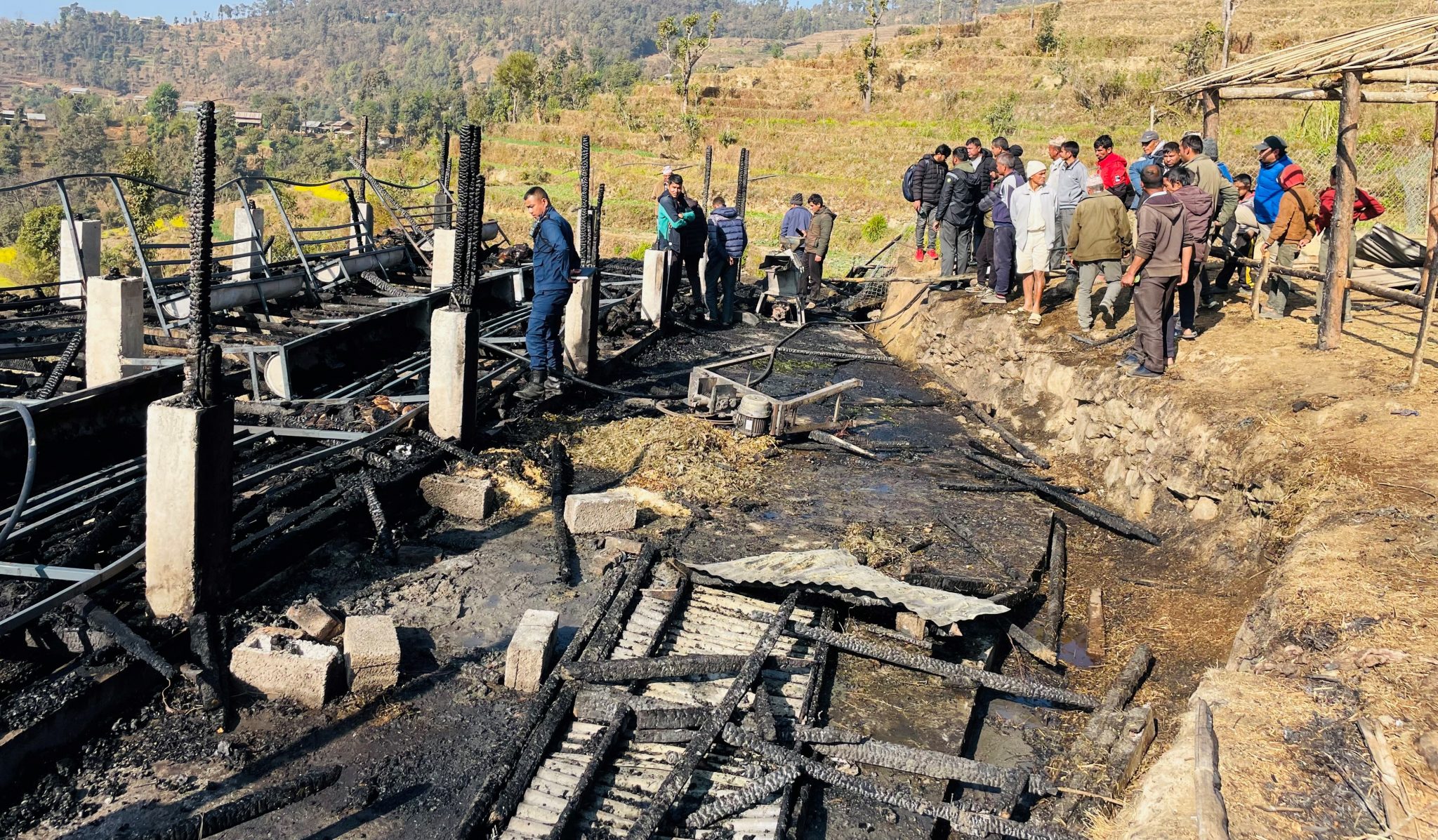वुधबार बिहान करेन्ट सर्ट भएर आगालागी भएको हुन सक्ने वडाध्यक्ष महतले जानकारी दिए । आगलागीबाट फर्मको सम्पुर्ण भौतीक संरचना समेत जलेर नष्ट भएको छ । बाख्राका लागि आवश्यक दानालगायत अन्य सामग्रीहरुसमेत जलेर नष्ट भएको वडाध्यक्ष महतले जानकारी दिए । स्थानीयको सक्रियतामा आगोलागी नियन्त्रणमा लिइएको थियो ।
