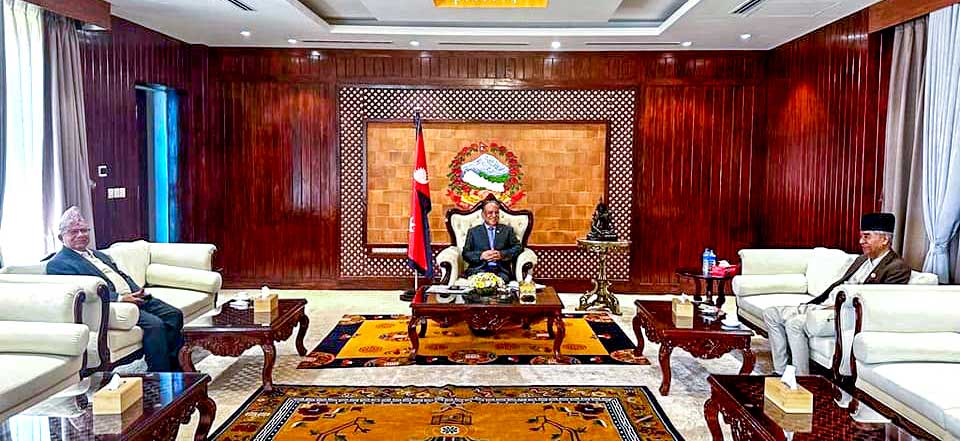 मन्त्रिपरिषद् विस्तारका लागि सोमबार प्रधानमन्त्री प्रचण्ड, कांग्रेस सभापति शेरबहादुर देउवा र एकीकृत समाजवादीका अध्यक्ष माधवकुमार नेपालबीच छलफल भएको थियो । छलफलमा माओवादीले गृह, कांग्रेसले अर्थ र एकीकृत समाजवादीले भौतिक पूर्वाधार वा ऊर्जा मन्त्रालय लिने सैद्धान्तिक सहमति भएको स्रोतले जनाएको छ । यसअघि तीन नेताबीच छुट्टाछुट्टै द्विपक्षीय छलफल भएको थियो ।
