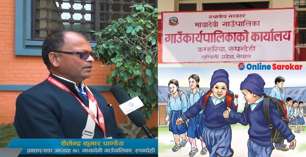 काठमाडाैं । रुपन्देहीको मायादेवी गाउँपालिकाका प्रवक्ता शैलेन्द्र कुमार पाण्डेय विपन्न विद्यार्थीको सहारा बनेका छन् । मायादेवी गाउँपालिका वडानम्बर ७ का वडाअध्यक्ष समेत रहेका पाण्डेयले आफ्नो वडाका गरिब तथा विपन्न बालबालिकालाई निःशुल्क गुणस्तरिय शिक्षा र शैक्षिक समाग्री तथा पोशाक समेत उपलब्ध गराएका हुन् ।