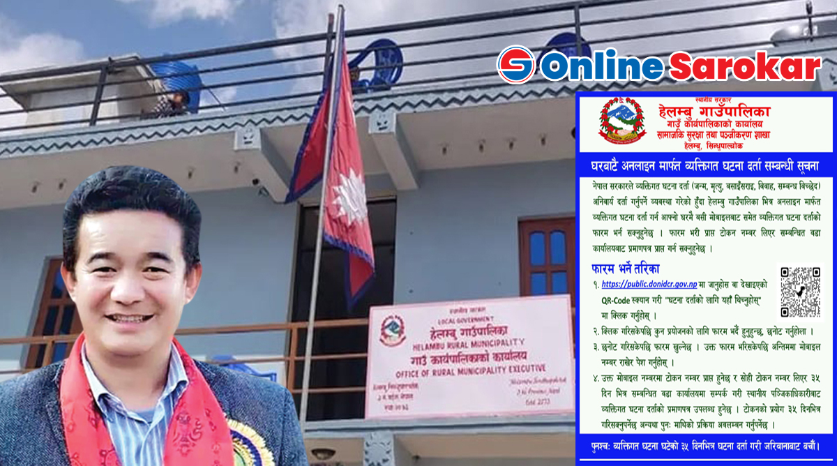 सिन्धुपाल्चोकको हेलम्बु गाउँपालिकाले प्रविधिमैत्री सेवा विस्तार गरेको छ । समयक्रमसँगै सुशासन र प्रविधिमैत्री पालिकाको नीति लिएको हेलम्बुले व्यक्तिगत घटना दर्तासहितका सरकारी सेवा अनलाइनबाटै दिन सुरु गरेको हो ।