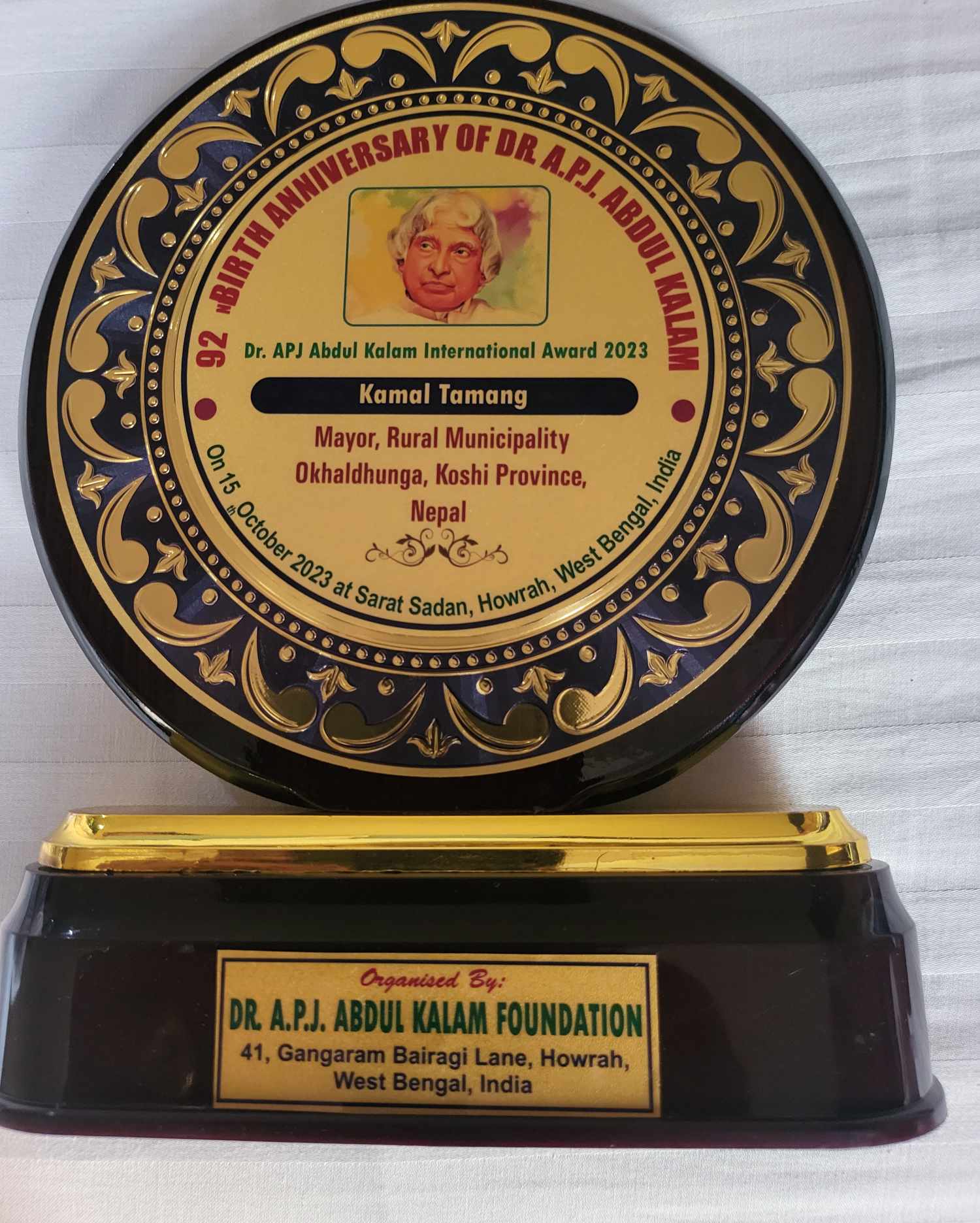 डा.एपीजे अब्दुल कलाम फाउण्डेशनले सुनकोशी गाउँपालिका अध्यक्ष तामाङलाई भारतको कलकत्तामा डा.एपीजे अब्दुल कलाम इन्टरनेश्नल अवार्ड मार्फत सम्मान गरेको हो । जनताको अभिमत प्राप्त जनप्रतिनिधिले खेलेको जनपक्षिय भूमिकाको कदर गर्दै अवार्ड प्रदान गरिएको आयोजकले जनाएको छ ।