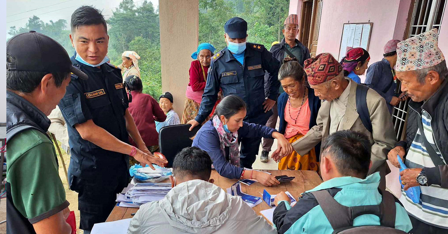 वृद्धवृद्धालाई सामाजिक सुरक्षा भत्ता वितरण गर्नका लागि बैंकका शाखा प्रबन्धक मेदानीप्रसाद रिजाल आफैँ वडावडा पुगेका थिए। भौगोलिक कठिनाइका कारण ज्येष्ठ नागरिक, वृद्धवृद्धा तथा अशक्तहरू गाउँपालिकाको केन्द्रमा रहेको बैंकसम्म पुगेर भत्ता लिन नसक्ने देखिएपछि गाउँपालिकाले वर्षको तीनपटक हरेक वडामा घुम्ती शिविर राखेर सामाजिक सुरक्षाभत्ता वितरण गर्दै आएको छ।