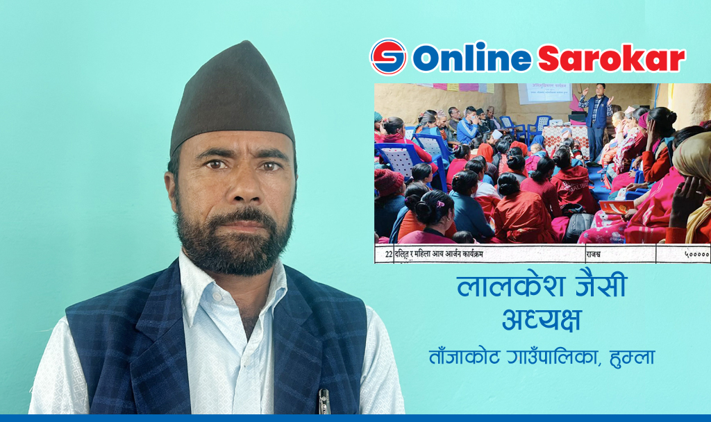बेरोजगार तथा अवसरबाट बञ्चित विपन्न समुदायलाई सिप सिकाएर व्यवसायसँग जोड्दै उद्यमी बनाएर आत्मनिर्भर बनाउन नीतिगत काम भईरहेको गाउँपालिका अध्यक्ष लालकेश जैसीले अनलाईन सँगबताए । नागरिकको हक, अधिकार आर्थिक समृद्धिका लागि आफुहरुले लडेर ल्याएको संघियताकै जगमा टेकेर आफु गाउँपालिकाको अध्यक्ष हुँदा सबै नागरिकलाई समान हैसियतमा पुराउने गरि योजनावद्ध काम गरिरहेको अध्यक्ष जैसीको दावी छ ।