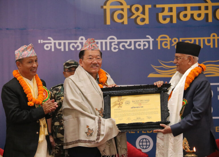प्रधानमन्त्री ओलीले सिक्किमका पूर्वमुख्यमन्त्री पवन चाम्लिङसहितका साहित्यकारहरुलाई सम्मान पनि गरेका छन् ।