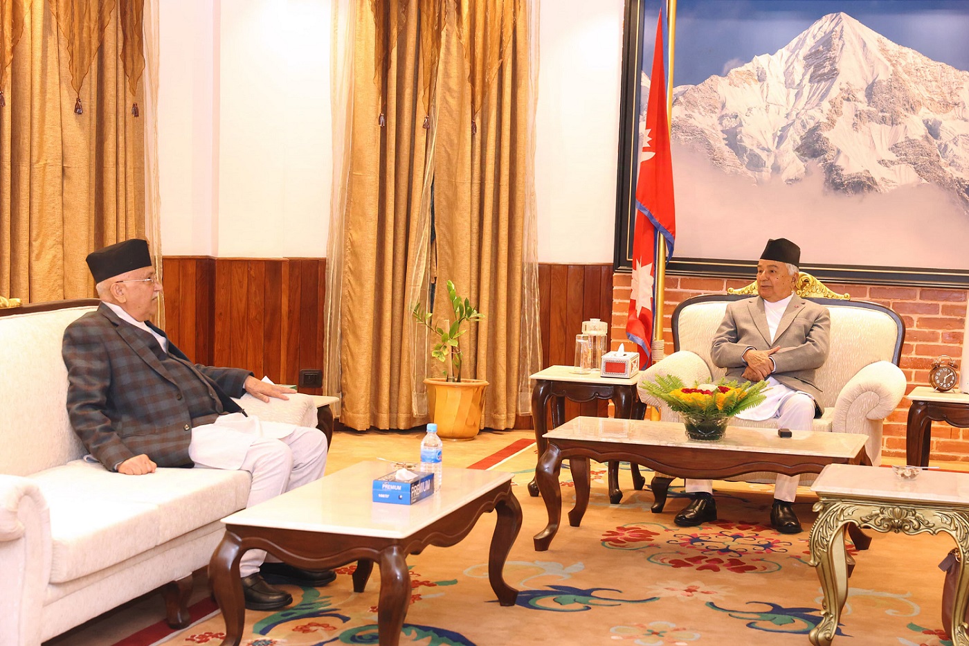 राष्ट्रपति रामचन्द्र पौडेलसँग प्रधानमन्त्री केपी शर्मा ओलीले भेट गरेका छन् । शीतलनिवास पुगेर प्रधानमन्त्री ओलीले राष्ट्रपति पौडेलसँग भेट गरेका हुन् ।