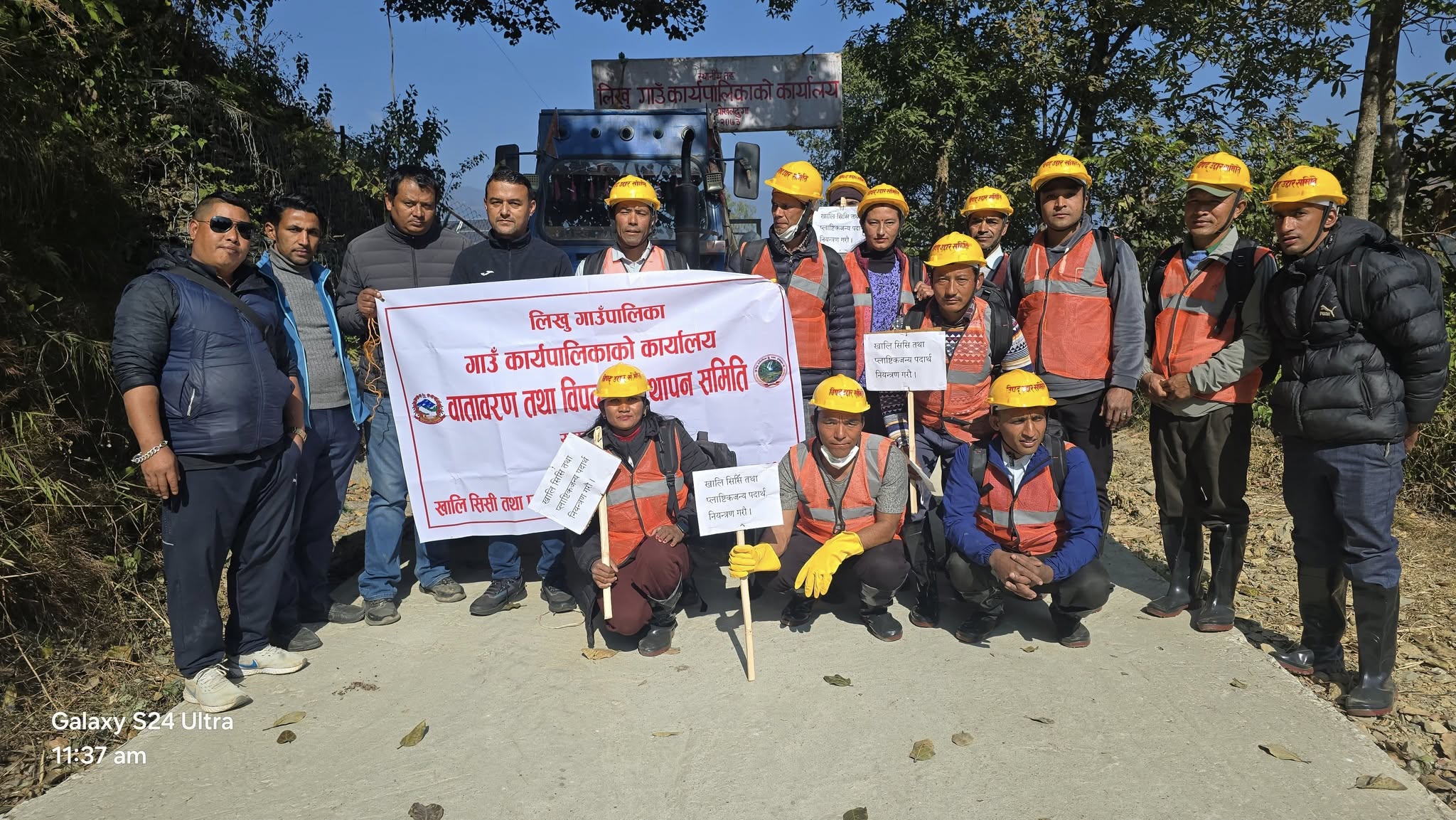 गाउँ पालिकाको खाली सिसी र प्लाष्टिक जन्य पद्धार्थको ब्यबस्थापन सम्बन्धि अभियानमा लिखु गाउँपालिकाको वातावरण तथा विपद व्यबस्थापन समितिका सदस्यहरु, पालिका प्रहरी तथा स्थलगत विपद उद्धार समितिका सदस्यहरु सहभागी रहेका छन् ।