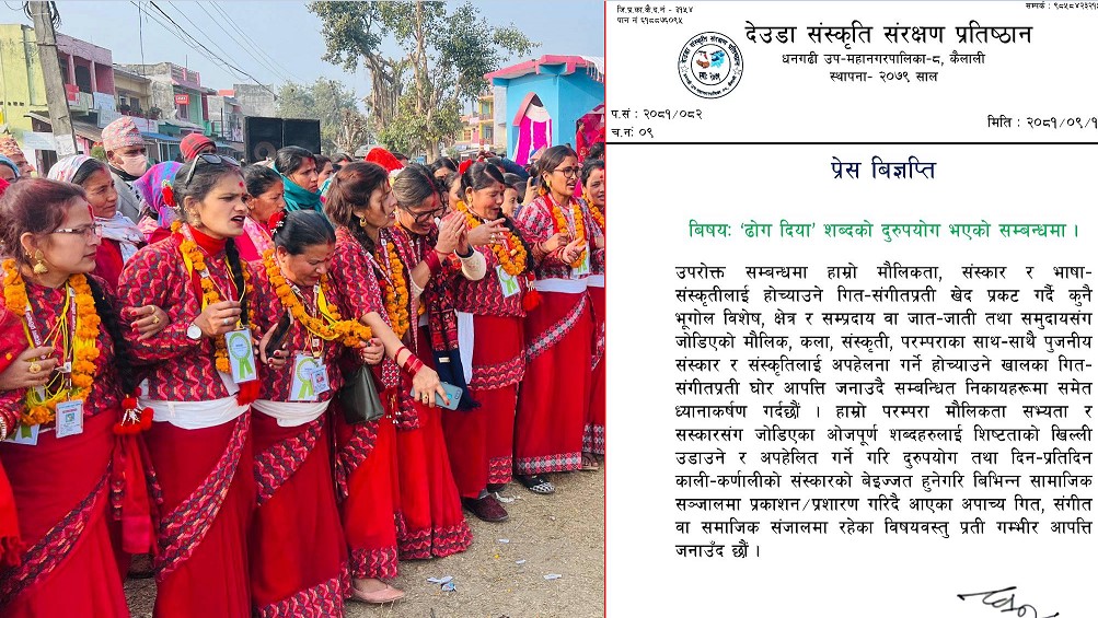 ‘ढोग दिया’ शब्दको दुरूपयोग भएकोप्रति देउडा संस्कृति संरक्षण प्रतिष्ठानले आपत्ति प्रकट गरेको छ ।