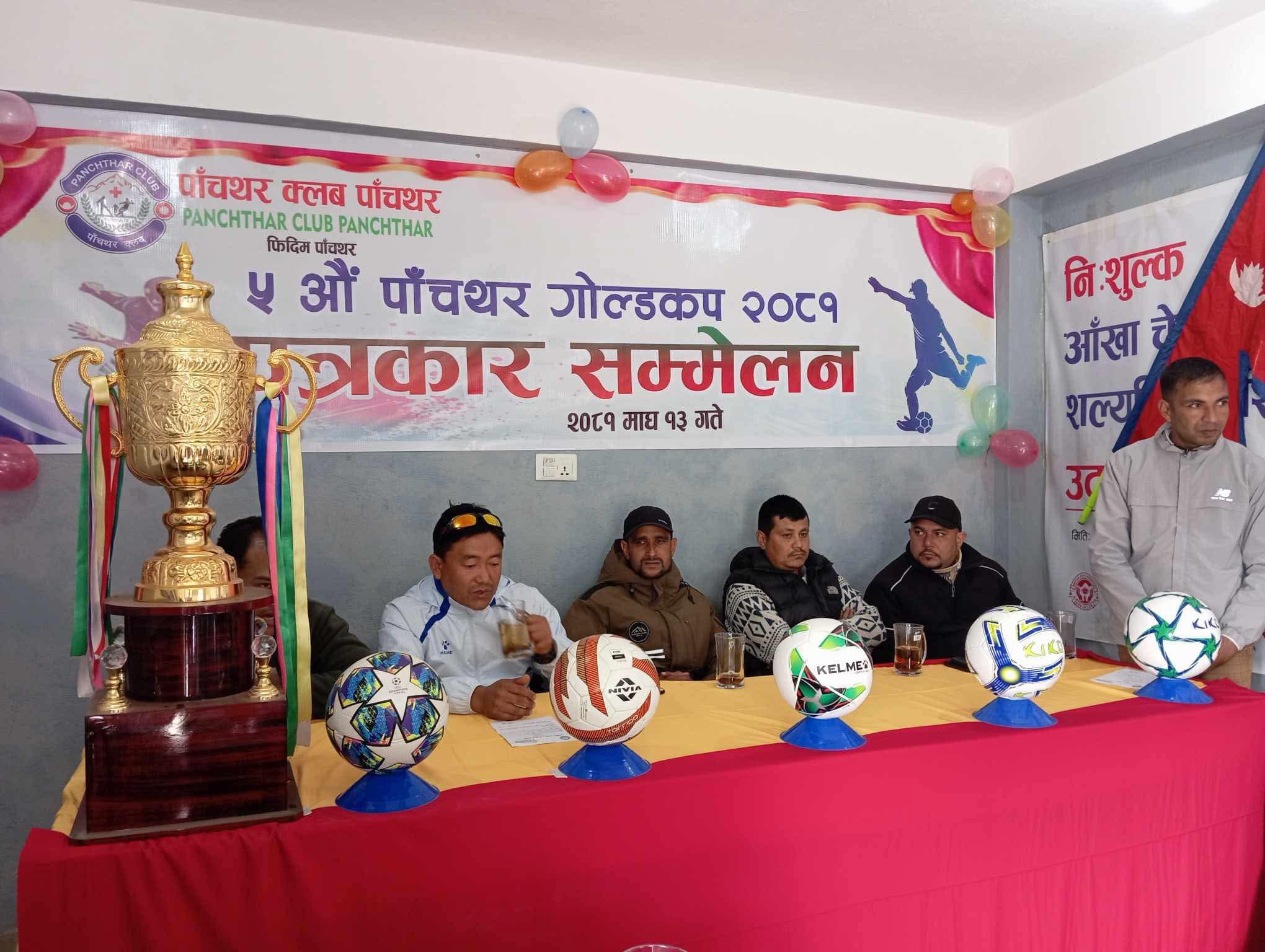 आयोजक क्लबले आज पाँचथरको फिदिममा पत्रकार सम्मेलनको आयोजना गरी प्रतियोगिताबारे जानकारी दिएको हो । चौथो पाँचथर गोल्डकपको उपाधि त्रिभुवन आर्मी फुटवल क्लबले जितेको थियो ।