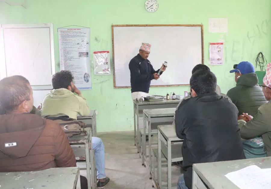 “यहाँका धेरै किसान पशुपालन व्यवसायमा जोडिएका छन्”, प्रमुख ठाकुरले भन्नुभयो, “तर उनीहरुमा पशुमा लाग्ने रोग र उपचार पद्धतिका विषयमा जानकारी नहुँदा धेरै समस्या छ । जनशक्ति अभावमा राज्य तहका पशु प्रविधिक सबै ग्रामीण भेगमा पुगेर सेवा प्रवाह गर्न नसकिरहेको अवस्था पनि छ । पशु स्वास्थ्यलाई सहज रूपमा विस्तार गर्ने लक्ष्यले एकमहिने प्रशिक्षण कार्यक्रम सञ्चालन गरेर सीप प्रदान गरेका छौँ ।”
