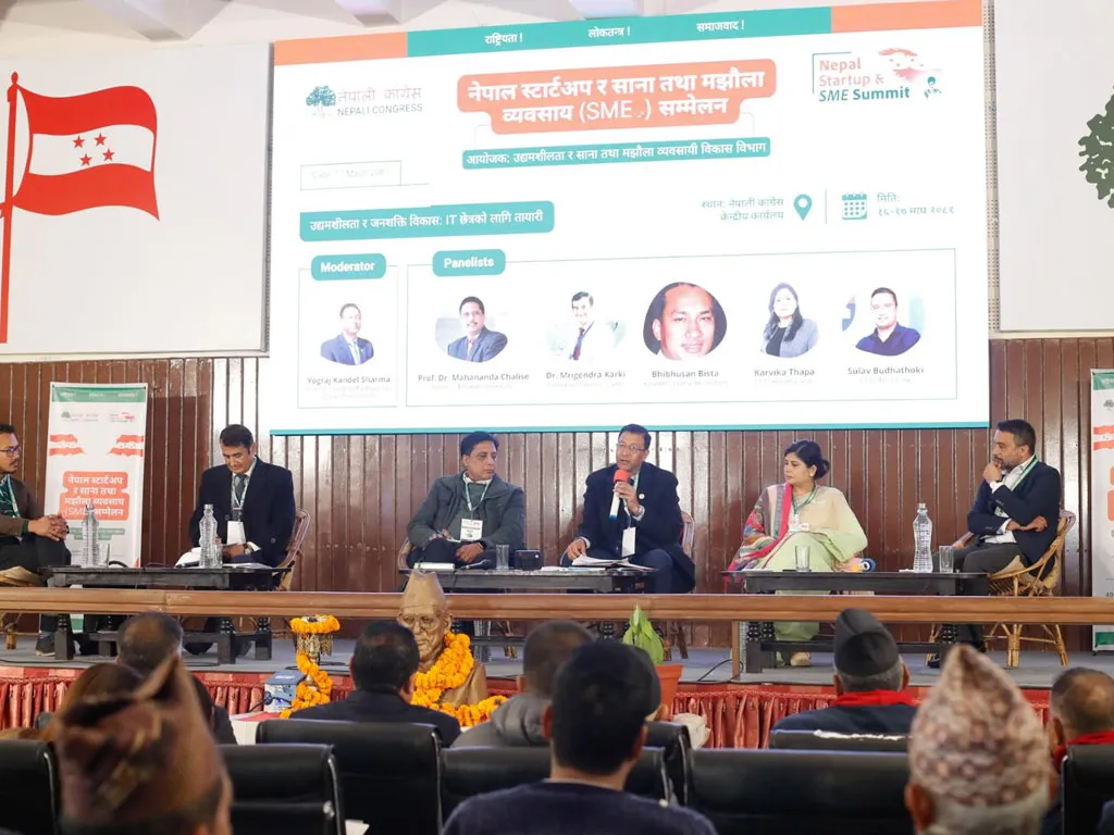 कांग्रेस केन्द्रीय पार्टी कार्यालय सानेपामा जारी नेपाल ‘स्टार्टअप’ र ‘एसएमई’ सम्मेलनको दोस्रो दिनको ‘उद्यमशीलता र जनशक्ति विकासः आईटी क्षेत्रको लागि तयारी’ शीर्षकको सत्रमा भएको छलफलका वक्ताहरुले आईटीमा थोरै लगानी गर्नसके राम्रो परिणाम हात पार्न सकिने बताएका हुन् ।