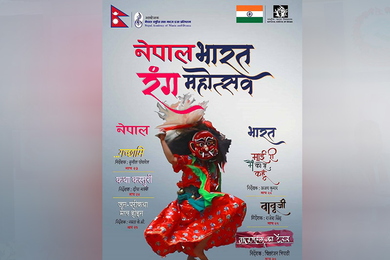 काठमाडौँमा बुधबारदेखि नेपाल–भारत रङ्ग महोत्सव सुरु भएको छ । राष्ट्रिय नाचघर जमलमा सुरु भएको महोत्सवको बुधबार साँझ संस्कृति पर्यटन तथा नागरिक उड्डयनमन्त्री बद्रिप्रसाद पाण्डेले उद्घाटन गर्नुभयो ।