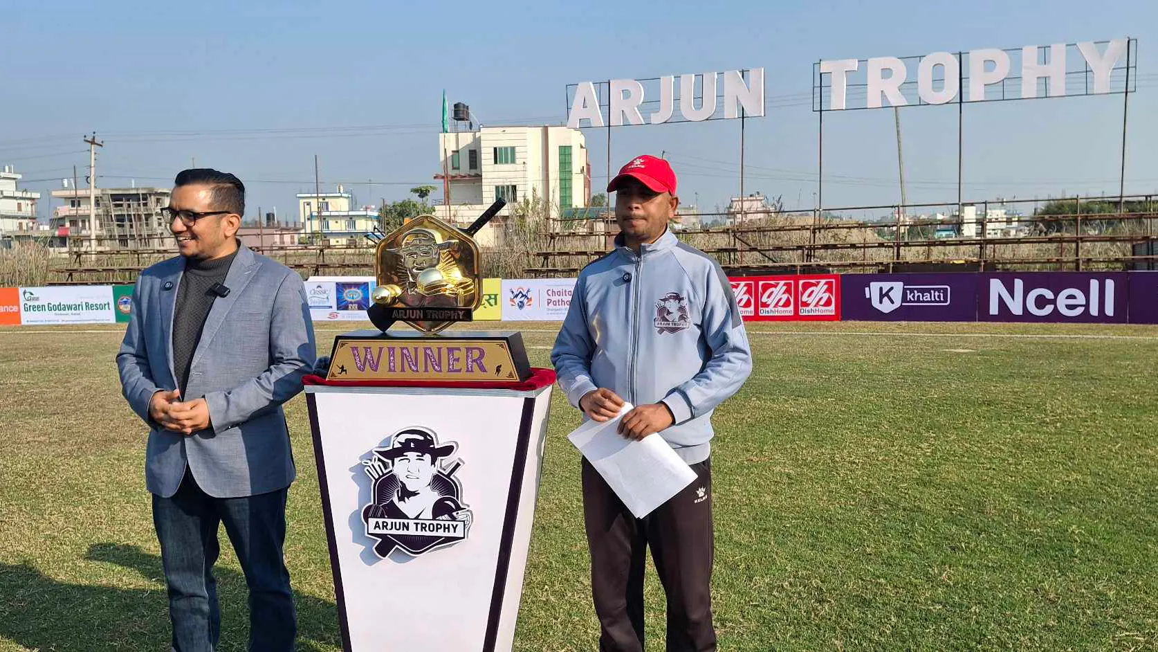 कैलालीको धनगढीमा जारी अर्जुन ट्रफी राष्ट्रिय क्रिकेटको फाइनल खेल आज हुँदैछ । फाप्ला क्रिकेट मैदानमा दिउँसो १ बजे हुने फाइनल खेलमा फ्रेन्ड्स युथ क्लब डडेल्धुरा र सिवाइसी अत्तरिया भिड्नेछन् ।