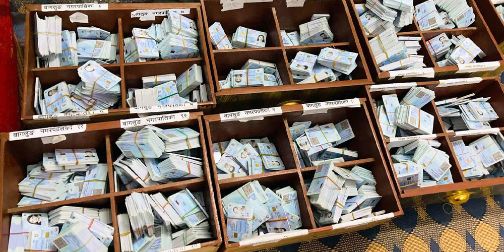 अहिले वडा तहमा राष्ट्रिय परिचयपत्रका लागि विवरण सङ्कलनको काम भइरहेको छ । जिल्ला प्रशासनमा अहिलेसम्म २८ हजार आठ सय ८५ राष्ट्रिय परिचयपत्र तयार भएर आइसकेको शाखा अधिकृत उपाध्यायले बताउनुभयो । तीमध्ये जम्मा १३ हजार ४७ परिचयपत्र मात्र सेवाग्राहीले लगेका छन्भने १५ हजार आठ सय ३८ परिचयपत्र प्रशासनमै रहेको उहाँले बताउनुभयो ।