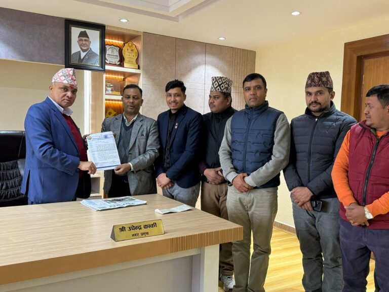 नेपाल पुस्तक तथा स्टेसनरि व्यवसाय महासङ्घका अध्यक्ष नारायणप्रसाद दाहाल र अनुगमन समितिका संयोजक विष्णुलाल गिरी लगायत नेपाल पुस्तक तथा स्टेसनरि व्यवसाय महासङ्घ जिल्ला शाखा काठमान्डुका पदाधिकारी एवम् सदस्यहरूले गोकर्णेश्वरका नगर प्रमुख दीपक रिसाल , कागेश्वरी मनोहरा नगरपालिका नगर प्रमुख उपेन्द्र कार्की र शंखरापुर नगरपालिका नगर प्रमुख रमेश नापितलाई विद्यालय हातभित्रबाटै पाठ्यपुस्तक तथा स्टेस्नरी सामग्रीको विक्री वितरण कार्यलाई रोक्न ध्यानाकर्षण पत्र बुझाएका छन् ।