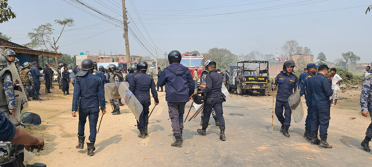 प्रेम सम्बन्धको विषयलाई लिएर उत्पन्न विवादमा झडप हुँदा नवलपरासीमा २० जना घाइते भएका छन् । एकको अवस्था गम्भीर छ । आक्रोशित स्थानीयले प्रहरीको गाडीसमेत जलाई दिएका छन् । आगजनीबाट एक कवार्ड गोदाम ध्वस्त भएको छ ।