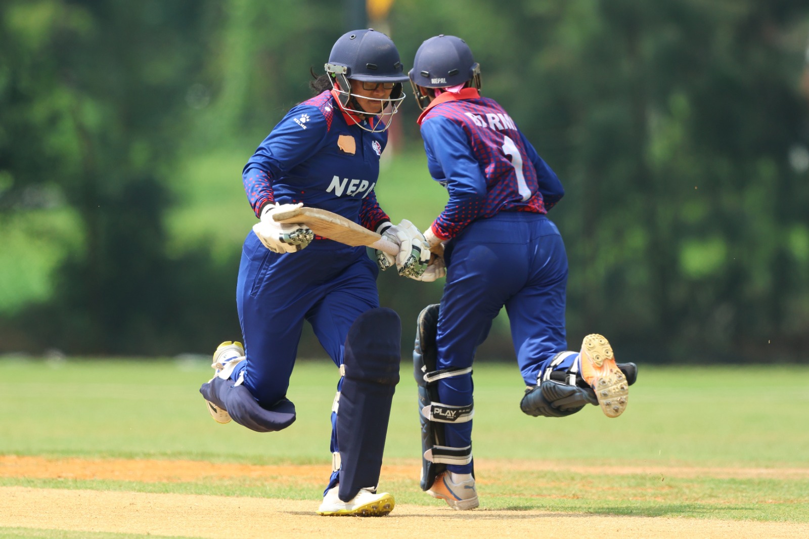 त्यसअघि टस हारेर पहिले ब्याटिङ गरेको हङकङले निर्धारित २० ओभरमा ७ विकेट गुमाएर १०० रन बनाएको थियो । हङकङका लागि कप्तान नताशा माइल्सले सर्वाधिक ३५ रन बनाएकी थिइन् । बलिङमा नेपालका ईश्वरी विष्ट र कप्तान इन्दु बर्माले २-२, रचना चौधरी र पुजा महतोले १-१ विकेट लिएका थिए ।