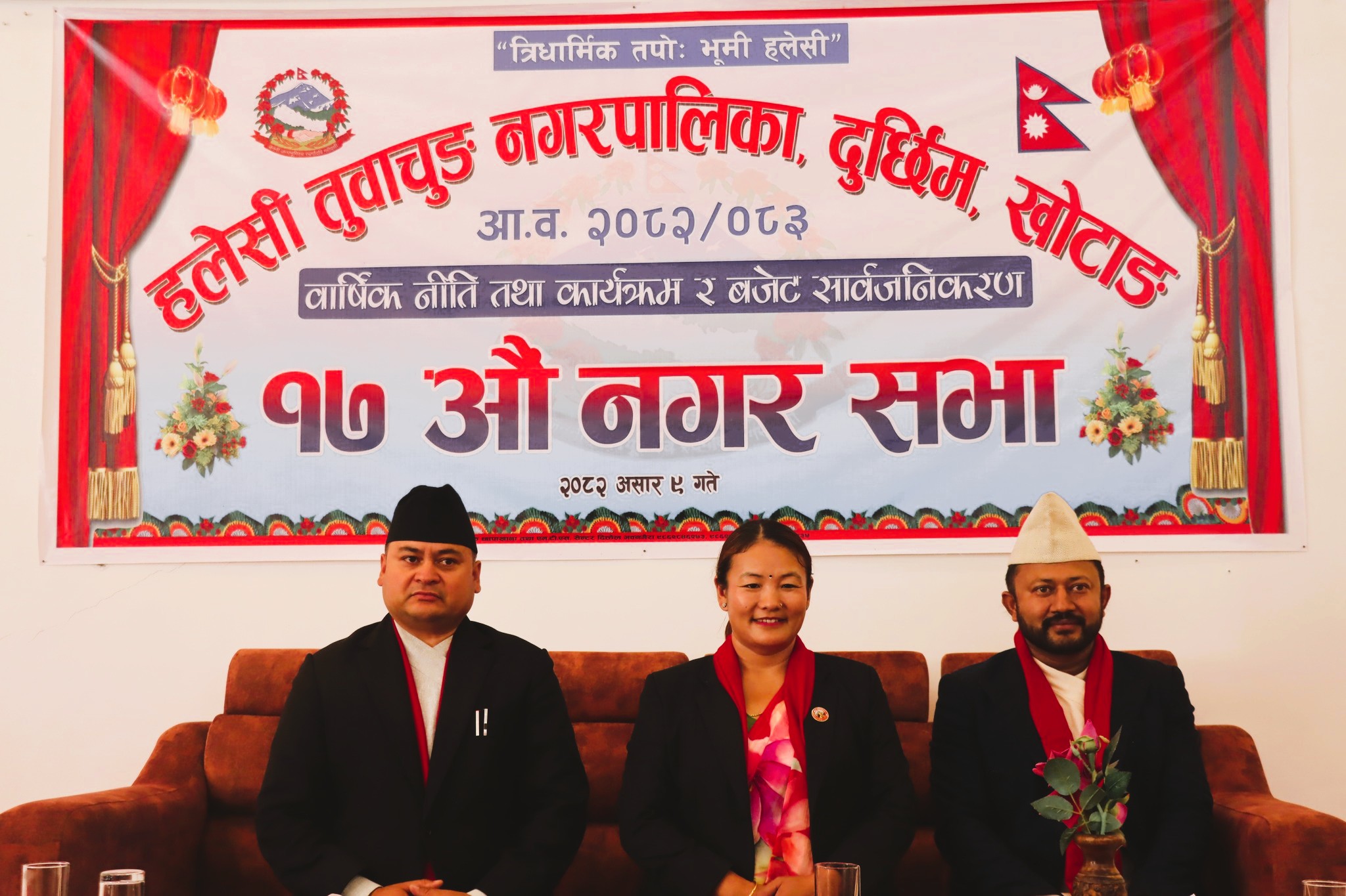 हलेसी तुवाचुङको नगरसभामा स्थानीय सबै राजनितिक दलका नेता तथा नागरिकको उपस्थिति थियो ।