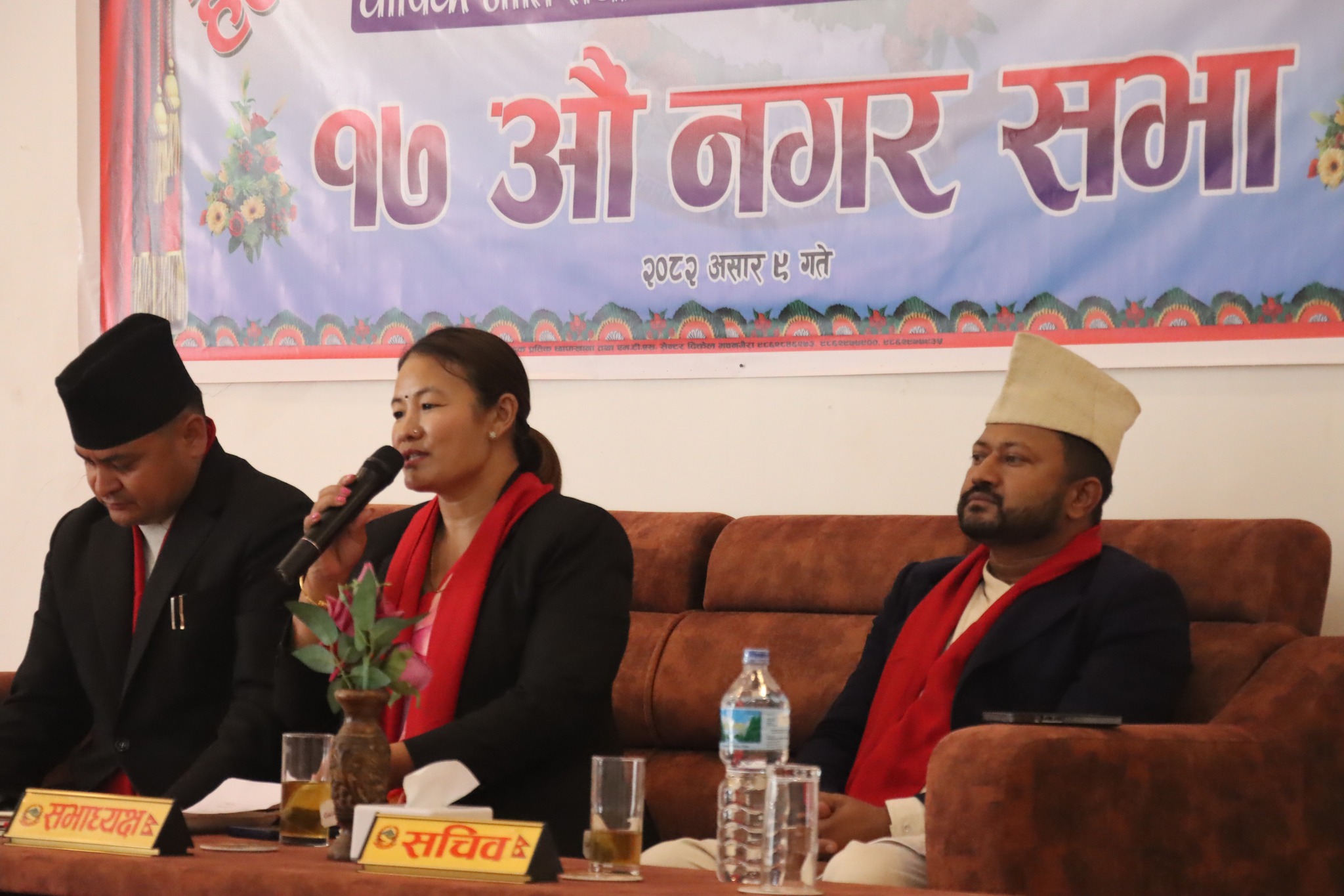 नगरसभामा नगरप्रमुख श्री विमला राईले पानी, पर्यटन, पूर्बाधार र रोजगारीलाई प्राथमिकता दिएर समृद्ध नगर निर्माणको नीति प्रस्तुत गरकी थिइन् । योजनावद्ध काम गर्नेक्रममा संघ र प्रदेश सरकारबाट समेत विगतको तुलनामा अपेक्षित बजेट ल्याउन सफल भएको बताउँदै नगरप्रमुख राईले आगामी वर्ष हलेसी तुवाचुङको विकासका लागि विशेष वर्ष बन्ने बताइन् । नगरप्रमुखले सभामा पेश गरेका नीति कार्यक्रममा स्थानीय उत्पादनको ब्राण्डिङ, बजारीकरण, कृषि मार्फत किसानलाई आत्मनिर्भर बनाउने, सीप मुलक तालिम र प्रविधि वितरण गरेर युवालाई गाउँमै उद्यमशिल बनाउने, मिसन रोजगारीलाई ठोस निश्कर्षमा पु¥याउने, टोलबस्तिसम्म दिगो विकासका योजनाहरु सञ्चालन गर्ने, हलेसी क्षेत्रका सबै पर्यटकीय क्षेत्रको पूर्वाधार विकास र प्रचारप्रसार गर्ने लगायतका महत्वाकांक्षी योजनाहरु समेटिएका छन् ।