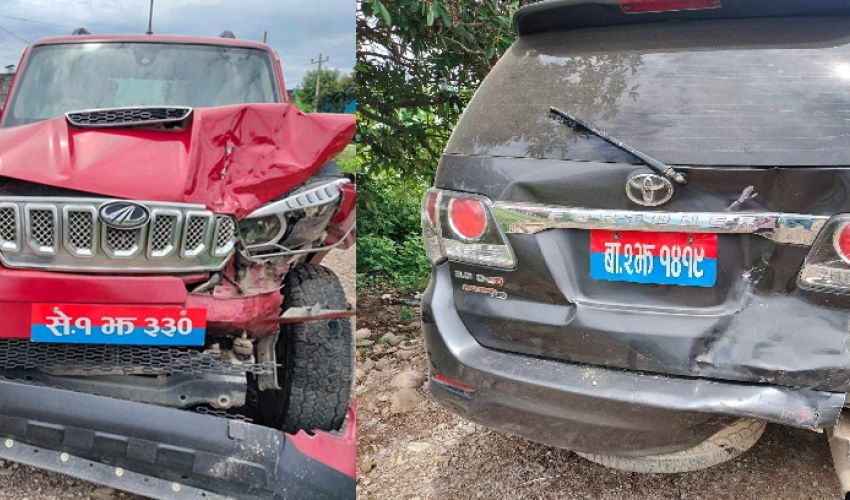 सुदूरपश्चिम प्रदेशका दुई मन्त्रीका गाडी एकआपसमा ठोकिँदा दुर्घटना भएको छ।