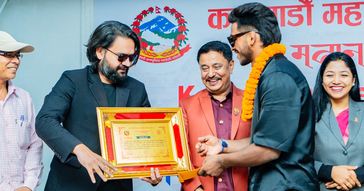 काठमाडौं महानगरपालिकाले भारतमा भएको म्याट्रिक्स फाइट नाइट १७ (एमएफएन)मा बेन्टामवेट च्याम्पियन रवीन्द्र ढाटलाई सम्मान गरेको छ । मंगलबार महानगरका तर्फबाट मेयर बालेन शाहले ढाँटलाई दुईलाख नगदसहित सम्मानित गरेको हो ।