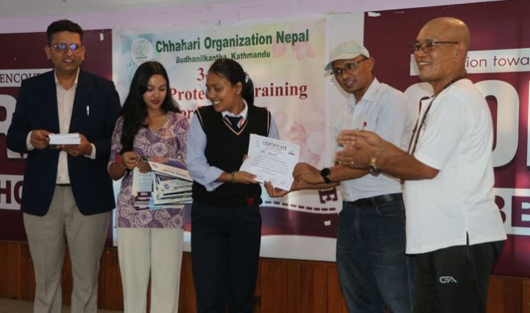 छाहारी संस्था नेपालद्वारा आयोजना गरिएको तीन दिने आत्मरक्षा तालिम आज सम्पन्न भएको छ । सेन्ट्रल कलेज, सिनामंगलमा सम्पन्न तालिमको समापन संस्थाका अध्यक्ष राघव शर्माले गर्नुभयो ।