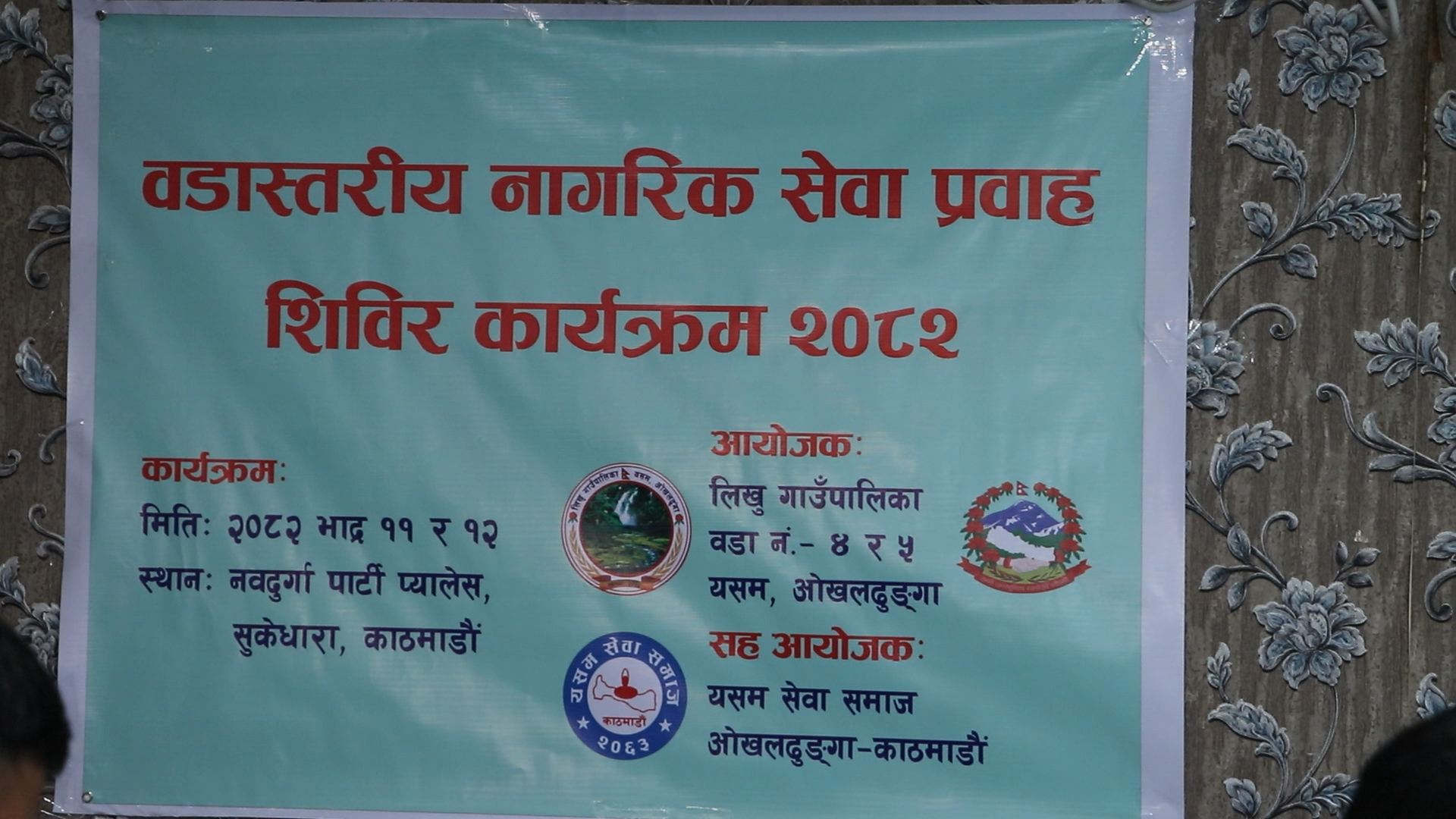 ओखलढुङ्गाको लिखु गाउँपालिका–४ र ५ ले अस्थायी रूपमा काठमाडौँमा बस्दै आएका आफ्ना नागरिकलाई लक्षित गर्दै दुई दिने वडास्तरीय नागरिक सेवा शिविर सञ्चालन गरेको छ । सुकेधारा स्थित नवदुर्गा पार्टी प्यालेसमा आज देखि सुरु भएको शिविरमा सामाजिक भत्ता वितरण तथा नवीकरण, परिचयपत्र दर्ता–पंजीकरण, लगायत वडा बाट दिइने विभिन्न सिफारिससहितका सेवा उपलब्ध गराइँनेछ ।