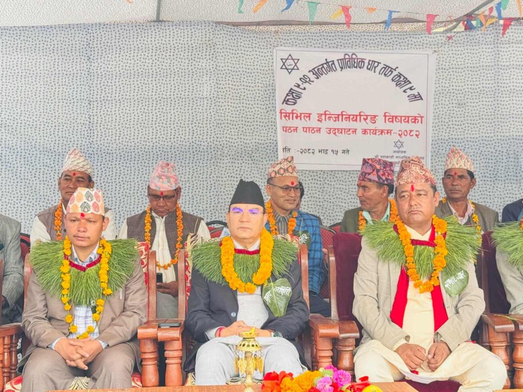 उद्घाटन कार्यक्रममा बोल्दै मन्त्री मन्त्री शाहीले युवालाई प्राविधिक शिक्षा दिन सकिएमा रोजगारीका अवसर सिर्जना हुने र विदेश पलायनमा समेत कमी आउने उल्लेख गरे । उनले यस धारबाट निस्कने विद्यार्थीले आफ्नै गाउँमा सडक, भवन, पुल तथा अन्य संरचना निर्माणमा सक्रिय भूमिका निर्वाह गर्ने विश्वास व्यक्त गरे ।