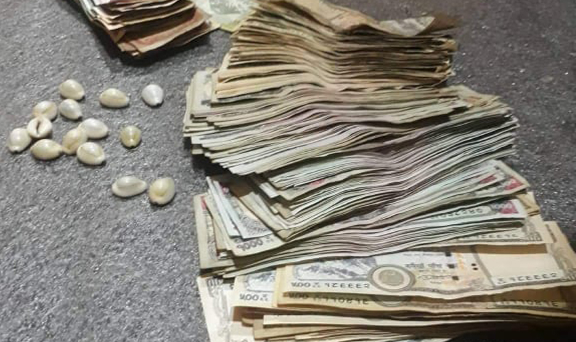 उनीहरुको साथबाट नखोलेको रातो तथा कालो रङ्गको तास ५ गड्डी र खोलेको ३ गड्डी तास बरामद गरेको प्रहरीले जनाएको छ । उनीहरुलाई विशेष सूचनाको आधारमा प्रकाउ गरिएको हो ।
