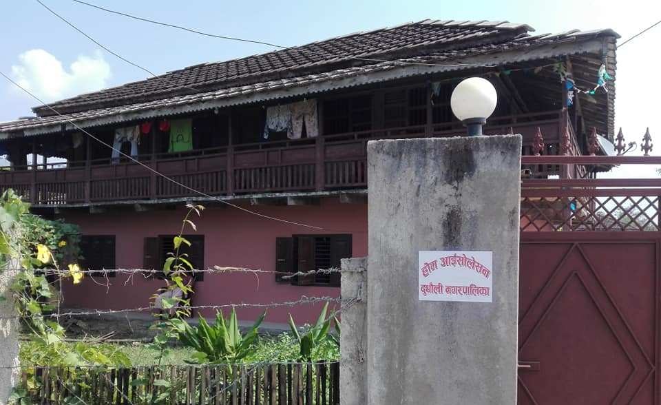 दुधौली नगरपालिकाले चार दिनअघि देखा परेका कोरोनाका २७ जना बिरामीको घरमा होम आईसोलेसन लेखिएको रातो स्टिकर टाँस्न सुरु गरेको छ । सङक्रमितको पहिचान, सङक्रमण न्युनिकरण गर्न र दशैं तथा अघिपछि पाहुना लाग्ने काम परेर भेट्न घरमा पुग्ने प्रवृत्तिलाइ रातो स्टिकरले निरुत्साहित गर्ने नगरपालिकाका मेयर घनश्याम राउतले बताए ।