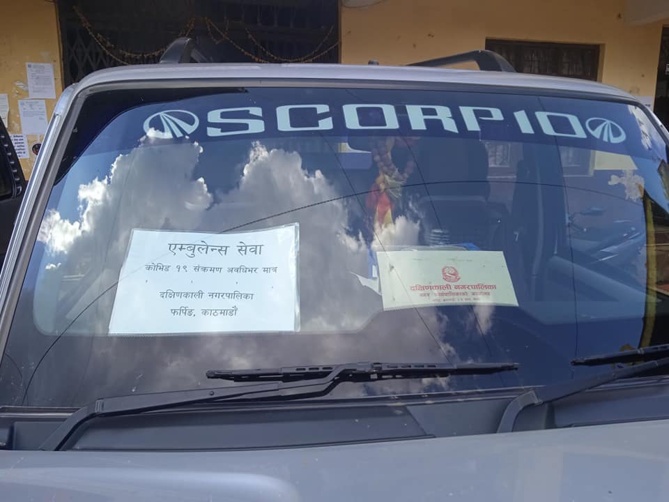 काठमाडौंको दक्षिणकाली नगरपालिकाका प्रमुख–उपप्रमुखले आफुले प्रयोग गर्ने सवारी  एम्बुलेन्सको रुपमा प्रयोग गर्न थालिएको छ । नगरप्रमुख मोहन बस्नेत र उपप्रमुख बसन्ती तामाङले एम्बुलेन्सको अभावमा नागरिकहरुलाई अस्पताल सम्म पुग्नलाई सास्ती व्यहोर्नुपर्ने बाध्यता हटाएर बिरामीलाई समयमै अस्पताल पु¥याउन आफुले चड्ने सवारी प्रयोग गर्न थालेका हुन् ।