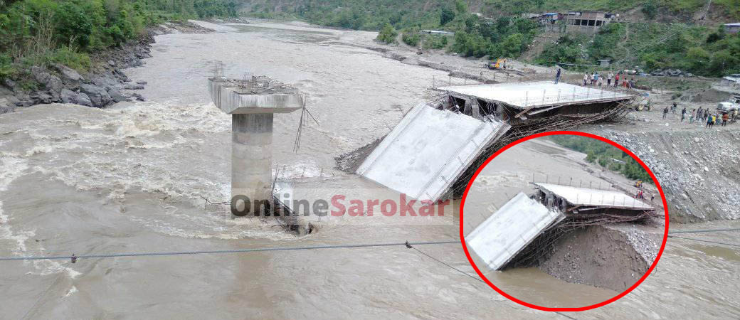 बुधबार मात्रै ढलान गरेको पुलको ४० मिटरभागमा बाढीले क्षति गरेको छ । निर्माण सम्पन्न गर्नुपर्ने बेलामा पुल निर्माणको काम पछिल्लो समय तिव्र बनाईएको थियो । वर्षामा बाढीको त्रास हुने भएकाले त्यस अगावै सक्नेगरि काम अघि बढाईएको भएपनि ढलान सकेको केही घण्टामा बाढीले पुल बगाएको निर्माण कम्पनीका प्रतिनिधि मदन माझीले बताए । उनका अनुसार यो पुल नयाँ टेक्नोलोजी अन्तरगतको केवल ब्रिज हो । उक्त प्रविधिबाट बनेको पुलमा ढलान सकिएपछि केवल तान्ने तयारी थियो । केवल तान्न नपाउँदै बाढीले बगाएको माझी बताउँछन् । ‘यो नेपालमा नयाँ प्रविधिबाट बन्दै गरेको पुल हो । केवल ब्रिज बनाउँदा ढलान सकेको १४ दिन सम्म केवल तान्नुपर्ने हुन्छ तर ढलान सकेको केही घण्टामै बाढीले बगायो ।’ माझीले भने, ‘गुणस्तरीय काम गर्दा गर्दै प्रकृतिले साथ नदिँदा ४० मिटर स्ल्याव भत्कियो । निकै ठुलो क्षति भयो ।’ माझीका अनुसार करिब ६ करोड बराबरको क्षति भएको छ । स्थानीय समेत रहेका उनि भन्छन् ‘हेर्दा हेर्दै बाढीले वितन्डा मच्चायाे’