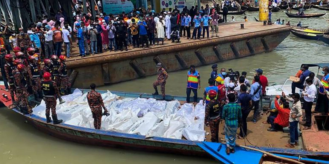 ‘तीन तले सो फेरी नदीको बीचमा आगो लागेको थियो । आगलागीमा जलेका ३२ जनाको शव फेला पारेका छौं । मृतकको संख्या अझै बढ्न सक्छ ,’ स्थानीय प्रहरी प्रमुख मोइनुस इस्लामले भने । आगो लागेपछि कोही नदीमा हाम फालेका थिए ।