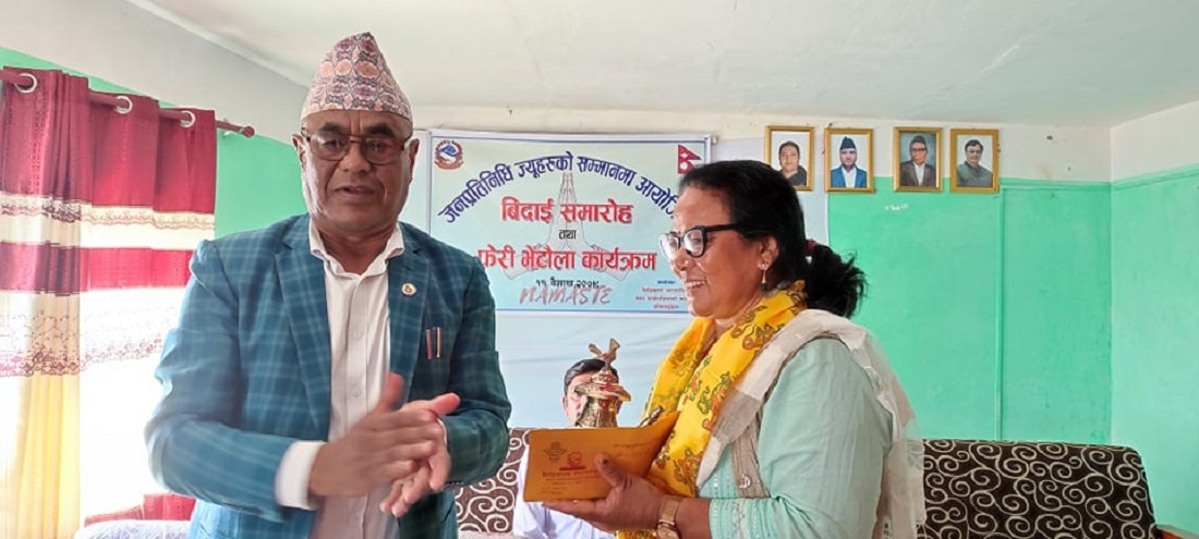 ओखलढुंगा । सिद्धिचरण नगरपालिकाका प्रमुख मोहनकुमार श्रेष्ठले प्रस्तावित नगरप्रमुख इच्छाकुमारी गुरुङलाई जितको शुभकामना दिएका छन् । उपप्रमुखको भूमिमकामा ५ वर्ष काम गरेकी गुरुङलाई नेकपा एमालेले प्रमुखमा अघि सारेपछि वर्तमान नगरप्रमुख श्रेष्ठले जितको शुभकामना दिएर नगरपालिकाबाट विदाई गरेका हुन् ।