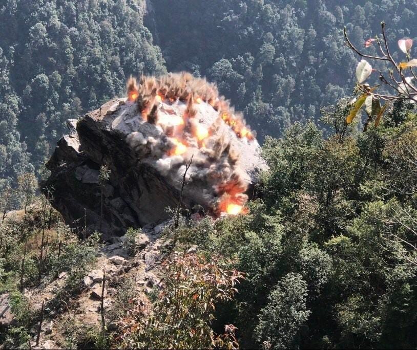 हेलिकोप्टरमार्फत एयर कम्प्रेसरलगायतका विभिन्न उपकरण तथा सामग्री ढुवानी गरेर फुटाएको सेनाले जनाएको छ । पल्सङ ढुंगा फुटाइसकेपछि दुप्चेश्वर गाउँपालिकाले समापन कार्यक्रम राखेको थियो ।