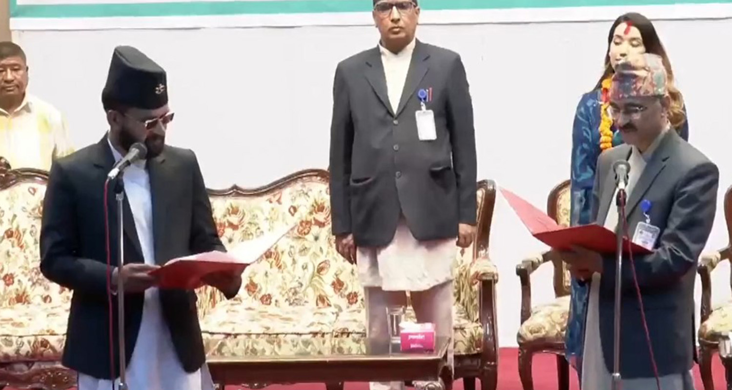 काठमाडौं। काठमाडौं महानगरपालिकाका नवनिर्वाचित मेयर बालेन्द्र साह ९बालेन०ले पद तथा गोपनीयताको शपथ ग्रहण गरेका छन् । आज बिहान राष्ट्रिय सभागृहमा मुख्य निर्वाचन अधिकृत राजुकुमार खतिवडाले मेयर साहलाई शपथ ग्रहण गराएका हुन् ।