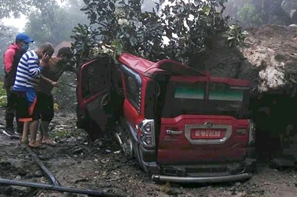 राति सडक नै टुट्ने गरी पहिरो जाँदा कार र मोटरसाइकल नदीमा खसेको डीएसपी युवराज खड्काले जानकारी दिए ।